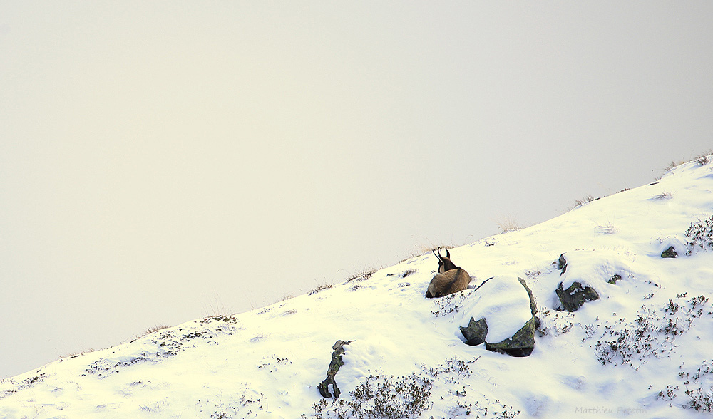Trace d'un renard solitaire sur le glacier de Leschaux.